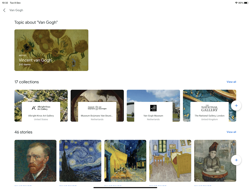 The site includes the latest news related to museums, collections, and events as well as nearby places to visit in person (with media of their collections). There are layers upon layers of resources; from visual media of artefacts to virtual tours to “stories,” which provide written context to a series of artefacts.