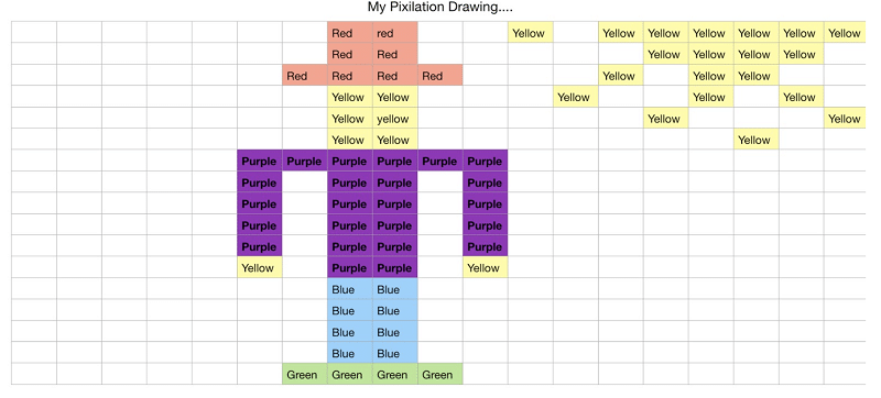 2) Another feature of Numbers is the ability to change the colour of a box depending on the text within it, this is called conditional formatting. This means you can make a self-marking worksheet where the box goes green when it contains the correct number or you can have some fun with a conditionally formatted pixel picture!
