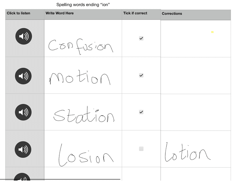 3) Numbers is versatile as it lets you add lots of different items into it, such as voice recording. Using these tools along with some tick boxes, for example, it makes it a straightforward job to create a self-paced spelling test. This example uses the drawing tool so that pupils cannot cheat by using spell checkers.