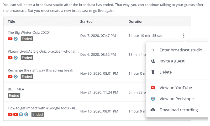 Once you’ve aired a live show you can also download past broadcasts to share them further with your school community, just in case they weren’t able to make the live show. Alternatively, you can upload them to your school website or social media pages.