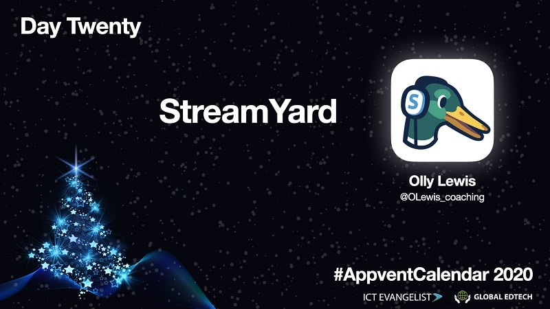 One of the main issues facing education was how to connect. How to connect with the community, both academic and school-based and also with those in our local professional networks and those beyond. From a school perspective, technology has enabled the facilitation of the day to day events in schools such as lessons, meetings, assemblies and clubs. Today’s entry is certainly a popular choice for educators, vloggers and podcasters alike for its versatility and ease of functionality, so on day 20 of the #AppventCalendar; enter StreamYard!