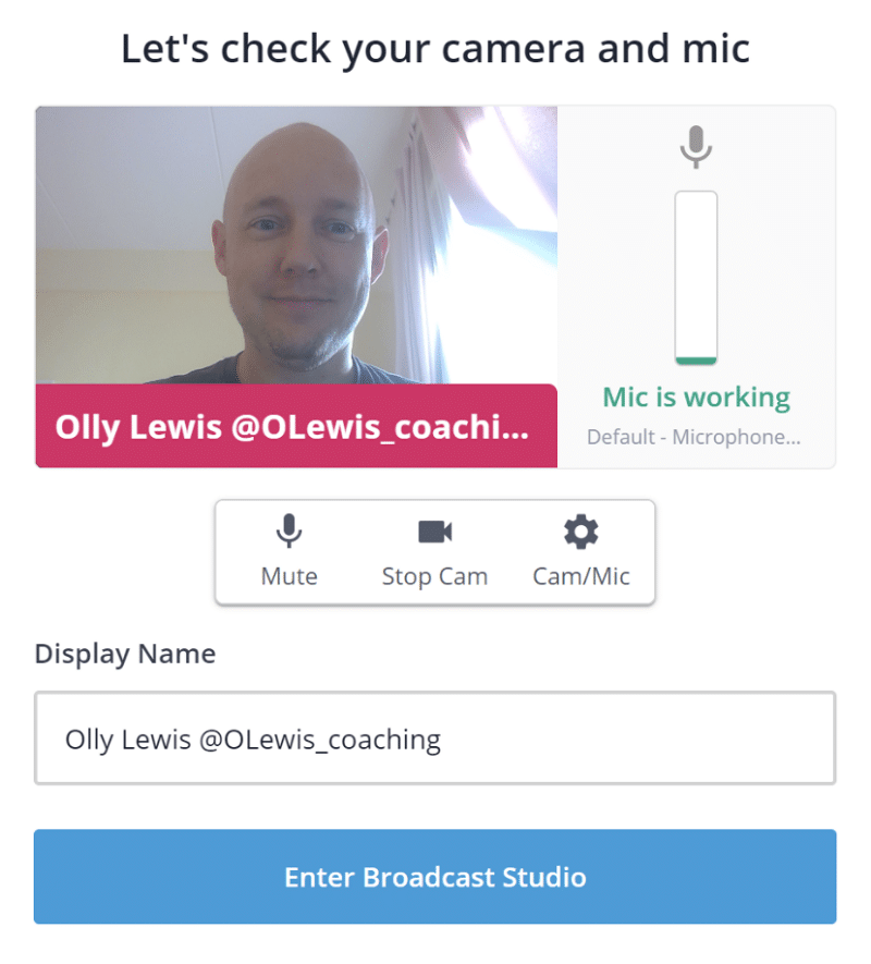 Guests can choose their display name prior to entering the studio along with checking their audio and video channels, see the image below. These are also editable once you are within the green room too just in case you notice a typo or simply wish to change it. The hosts can also not just disable the naming feature so that it doesn’t show so again, but you can change the names of guests too which is handy if they don’t know how to do it.