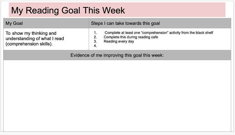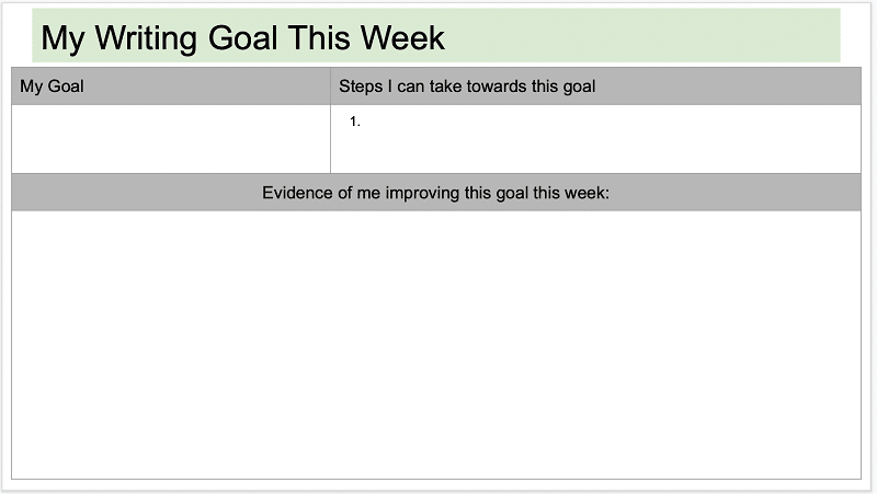 I always add a space for students to add evidence of what they are doing that week to accomplish each goal. A simple screenshot, photo, or link works well.