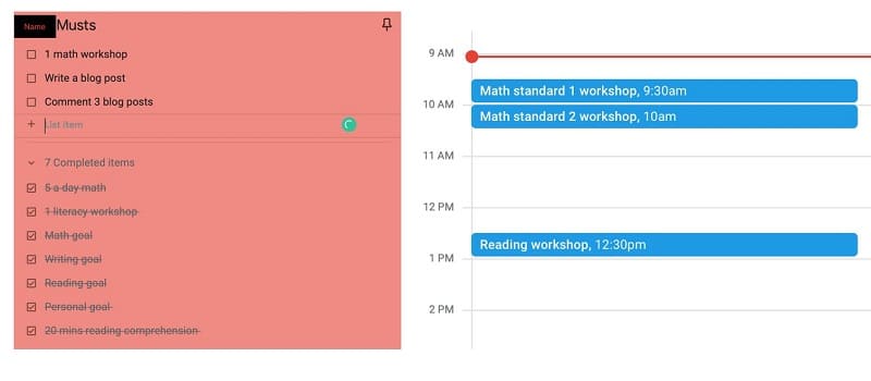 Google Keep or Google Calendar are great ways to keep students organised for different things they have planned during the week. In Google Keep, students can share their to-do lists with parents and teachers so they can share when they have completed various items. In Google Calendar, events can be set up with reminders of due dates, meetings, or workshop times.